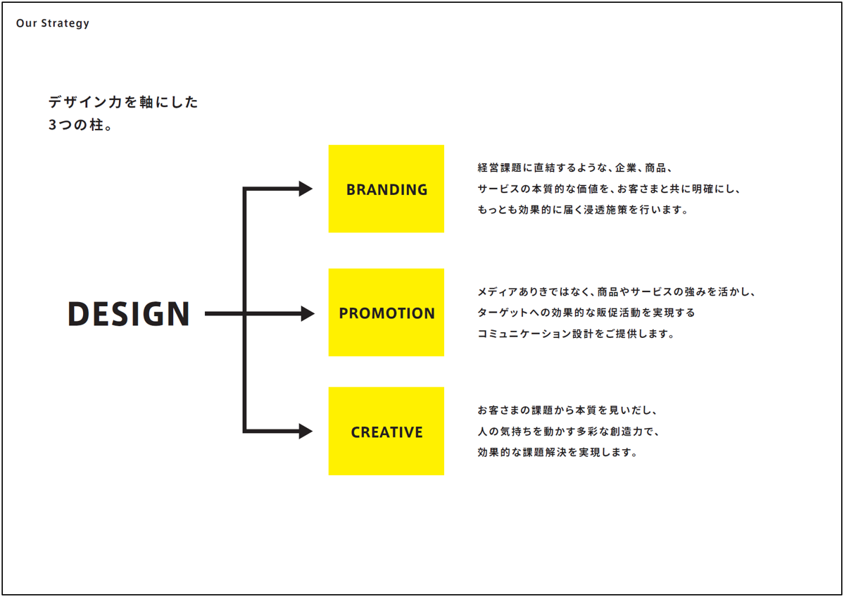 掲載内容 P5:Our Strategy デザインを軸にした3つの柱。